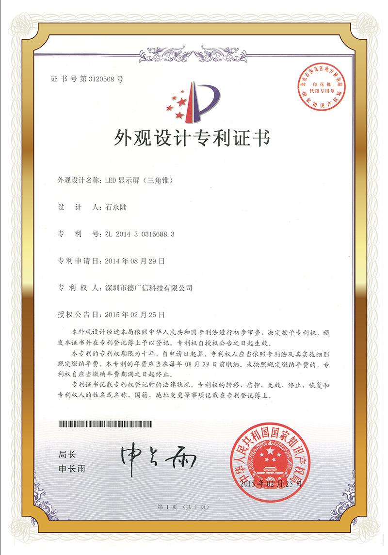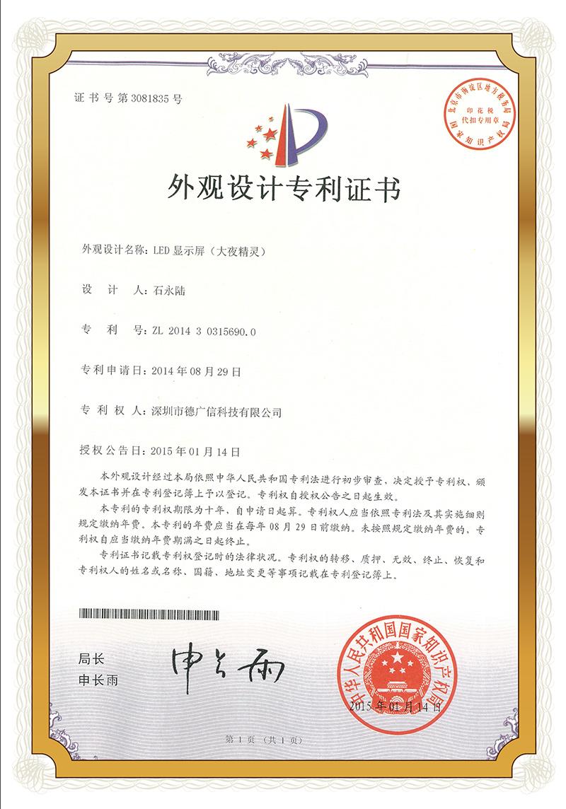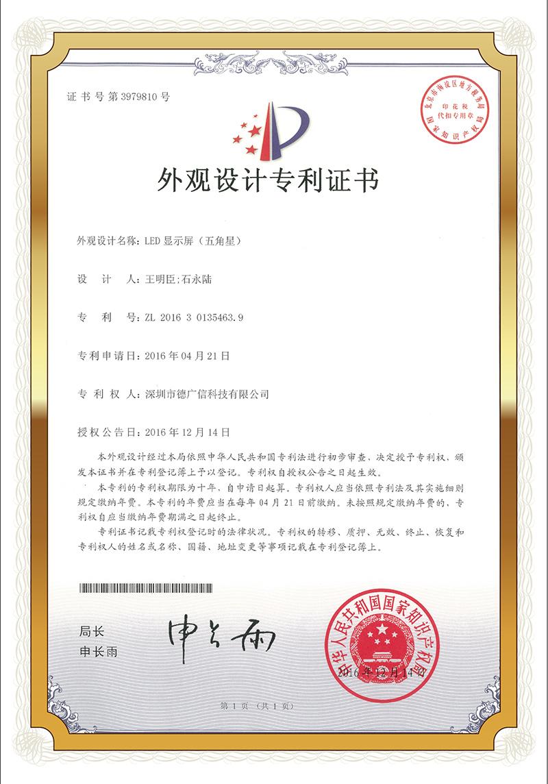 德廣信的第一家工廠于2008年6月在深圳市寶安區設立。近十年發展以來,德廣信一直秉持科研興企的理念,以市場需求為立足點,不斷加大研發投入及新產品開發力度,力求推陳出新,引領潮流,已擁有多項自主知識產權的P1.2的小間距高清LED顯示屏,以及戶外前維護高密度顯示屏為代表的系列產品,共計申請發明、實用新型等專利20幾項,業務已遍布全球20多個國家,產品技術含量及穩定性居于行業領先地位。